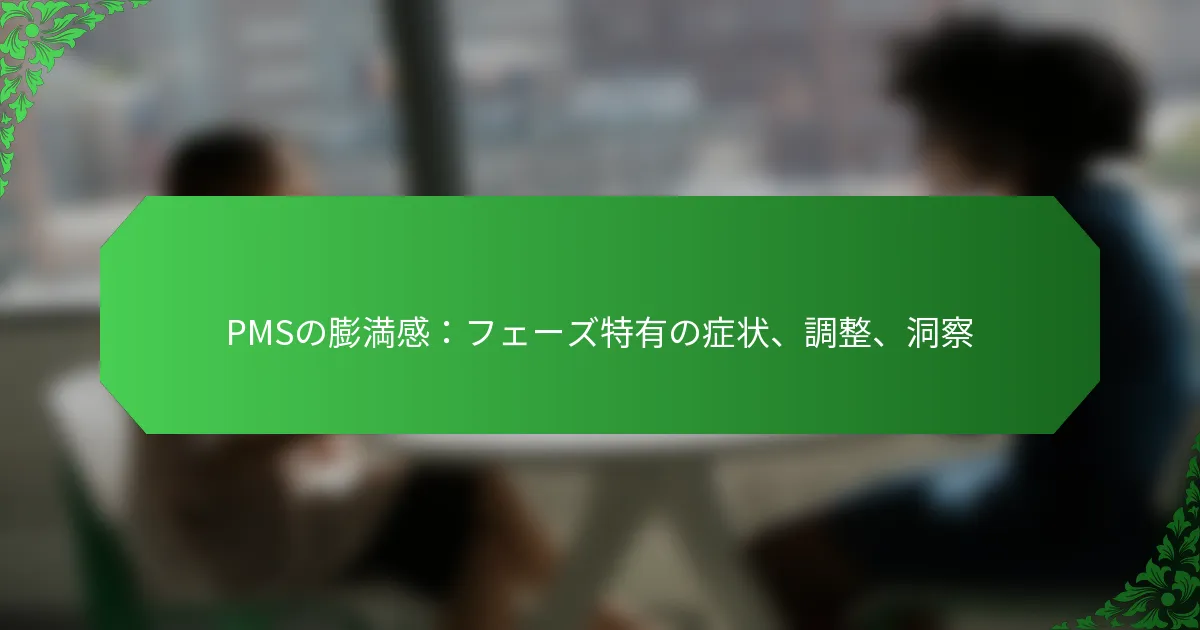 PMSの膨満感は、多くの女性が経験する一般的な症状で、月経前の数日間に腹部の膨れや不快感を伴い、主にホルモンの変動によって引き起こされます。PMSの段階特有の症状を認識することで、不快感を管理し、必要なライフスタイルの調整を行う手助けになります。食事の変更、運動、ストレス管理の技術を取り入れることで、個人は症状を軽減し、月経周期中の全体的な健康を向上させることができます。